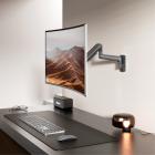 Smooth gas spring adjustment for height, tilt, and swivel. Supports up to 20 kg/44 lbs, freeing desk space with stable, durable, ergonomic comfort.