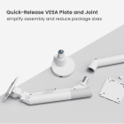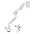 The LDT102-C012UC supports most 17"-49" monitors up to 20kg (44lbs) with confident stability and slim sophistication. Its built-in one-way bearing ensures smooth, effortless tilting, and a precision spring tension system guarantees its smooth motions. During angle adjustments, the rotation stop prevents the arm from hitting nearby walls and partitions. With convenient USB ports, data transfer and charging are facilitated. The topside installation means no crawling under desks, while quick-release joint and VESA plate make setup fast and packaging compact. Available in multiple colors to complement versatile spaces.