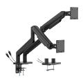 Equipped with a gas spring mechanism, this monitor arm enables smooth height adjustment, tilt, and swivel for precise ergonomic positioning. It supports monitors up to 20kg/44lbs, ensuring stable and reliable performance. Elevating the monitor frees up desk space for a cleaner, more efficient setup. The Smart Base integrates USB-A and USB-C ports for convenient charging and data transfer, delivering a cost-effective and functional workspace solution.