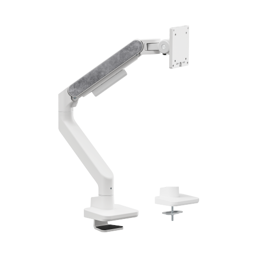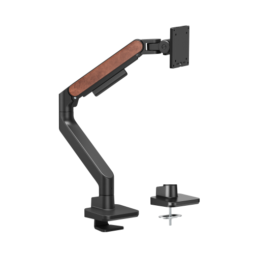 Securely holding up to 20kg (44lbs) and accommodating monitors up to 49''. Optimized head tilting spring makes a smoother tilting adjustment. Premium leather accents meet sleek functionality, this arm combines strength with style to elevate the workspace. Its easy topside installation eliminates the need for crawling under desks.