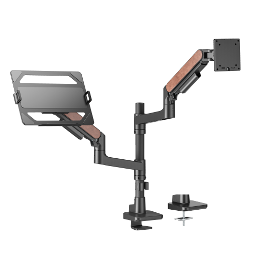 Securely holding up to 20kg (44lbs) and accommodating monitors up to 49''. The attached laptop holder supports up to 9kg (19.8lbs). Optimized head tilting spring makes a smoother tilting adjustment. Featuring a quick-release VESA plate and topside installation base, it offers unparalleled convenience for the best user experience. Premium leather accents meet sleek functionality, this arm effortlessly complements any interior decor.