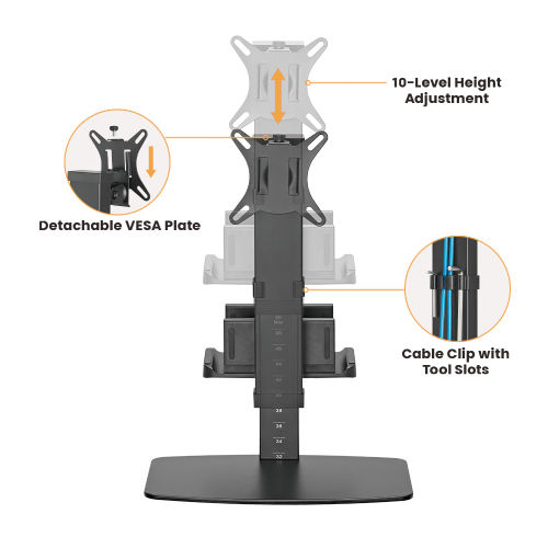 Vertical Lift Monitor Stand With Thin Client CPU Mount
