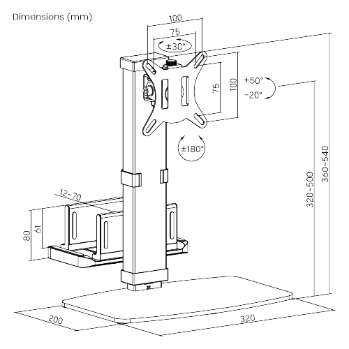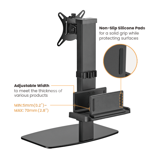 The LDT67-T01MP could be a great mounting solution for home or office that puts the CPU out of the way, reclaiming desk space for improved efficiency and neatness. 5-70mm (0.2"~2.8") adjustable width of the CPU mount allows the mount to be sized to the thickness of various CPUs. This Freestanding Monitor Desk Stand is a simple but strong mounting solution that raises your monitor to a comfortable ergonomic position at eye level so you don’t have to slump your back or strain your neck while working long hours at your desk.