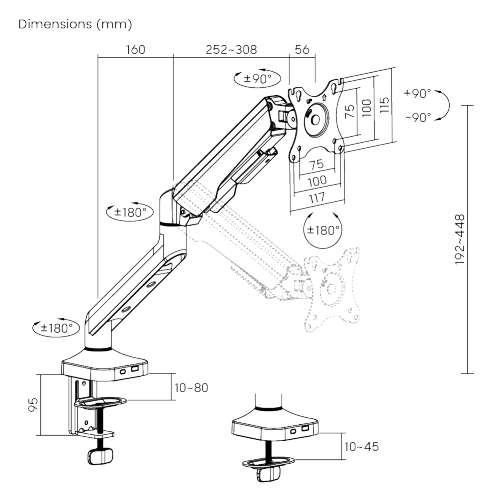 FlexPrecision Cost-Effective Mechanical Spring Monitor Arm LDT94-C012E Elegance meets affordability: for monitors up to 12kg (26.4lbs). from china(chinese)