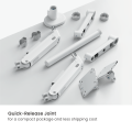 This model combines a sleek, streamlined profile with enhanced performance, supporting monitors up to 12kg (26.4lbs). It features effortless mechanical spring height adjustment, quick-release VESA plate & joint, and convenient topside installation. Integrated cable management keeps wires neatly organized and out of sight. Designed for durability and a clean aesthetic, it's the ideal solution for boosting productivity and maintaining a professional desk setup.