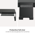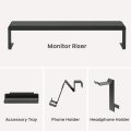 The STB-126 Steel Monitor Riser is designed for both home and office, providing robust support up to 20kg (44 lbs) with heavy-duty steel construction. This riser includes detachable storage adds on such as an accessory tray, headphone holder, and phone holder, allowing for customizable organization. The protective felt liner on the holders avoids the devices/glasses from scratches. What an ideal choice for maintaining a tidy and efficient workspace!