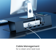 Enhance your setup with the STB29-01 Gaming Monitor Riser — a sleek all-in-one design that combines a riser and organizer. It features a power strip placement, integrated cable management, and vibrant ARGB ambient lighting. Keep your desk clean, power your gear efficiently, and enjoy a seamless, immersive gaming experience with superior organization and style.