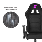 The GCH01-1 gaming chair combines premium comfort with robust support, featuring a metal frame, soft knitted fabric with velvet accents, and a wide 155° recline. Designed for durability, it supports up to 150kg on a stable nylon base with smooth-rolling casters. Customizable RGB and embroidered logos on the back add a personalized touch to your setup.