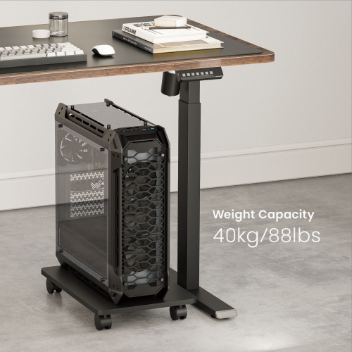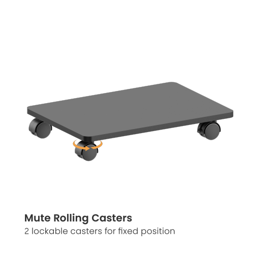 Effortlessly support cases weighing up to 40kg (88lbs). With the convenience of mute rolling casters, it is easy to reposition the CPU anywhere desired, making workspace organization a breeze. Plus, with two lockable casters, securely fix the stand in place, ensuring stability and peace of mind. Simplify setup and enhance workflow with this sleek and practical CPU stand, the perfect addition to any workstation.