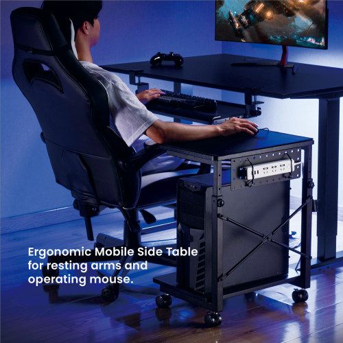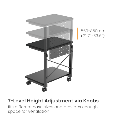 Designed for most CPU towers, this stand is 7-level height-adjustable, ensuring excellent ventilation. The top shelf and pegboard baffle provide ample storage space to organize the workspace. With 4 smooth casters, this rolling cart also serves as a side table, helping instantly set up a workspace anywhere. Each shelf supports up to 40kg (88lbs), guaranteeing stability and durability. Plus, enjoy a smooth mouse operation with the included waterproof desk mat.