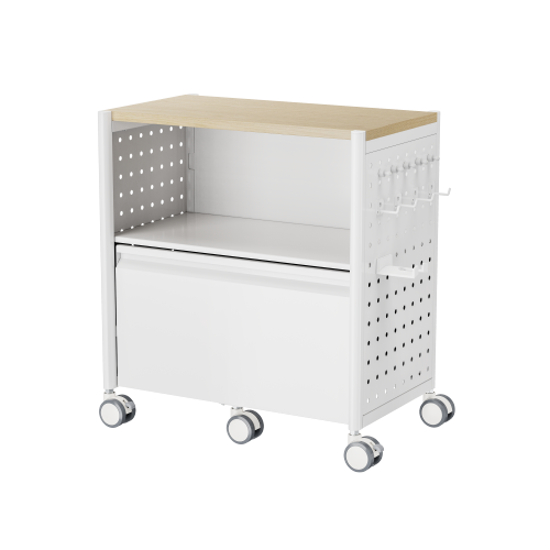 Adapted for the modern hybrid work environment, the MCT03-04 Mobile Cabinet with Pegboards by LUMI offers an agile and versatile storage solution. Designed with mobility and a compact footprint, it seamlessly adjusts as teams and workspaces evolve. Featuring two side pegboards, a spacious drawer, and an open shelf, it maximizes storage capacity while keeping essentials organized. The lockable casters get storage stop and go with the workflow. An ideal choice for dynamic and collaborative workspaces.