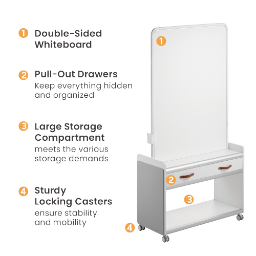 With a fluid sense of flexibility, the storage trolley allows users to get storage that can go with the flow and move easily as teams regroup and space reconfigure - creating an agile workplace that adapts to changing goals and personal preferences. Ample storage space keeps items and necessities organized and easily accessible. The pull-out drawers keep everything hidden to reduce clutter. The double-sided whiteboard allows users to record all ideas and inspirations anytime. All in all, it is the perfect office essential to support dynamic work styles!