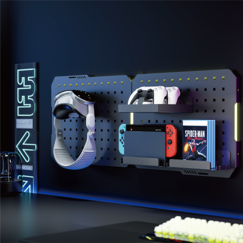 The Wall-Mount Dual Pegboard Set with LED Lighting provides a modern and efficient solution for organizing any workspace. Precision engineered, this dual pegboard system features evenly spaced perforations for versatile accessory placement and expanded storage capacity. Built-in LED lighting integrates seamlessly into any modern workstation or creative environment, providing enhanced visibility and style. Its durable construction and minimalist design create a perfect blend of organization and aesthetics, enhancing any space it occupies. Designed for secure wall mounting, it provides a stable and space-saving storage solution that keeps essentials easily accessible while maintaining a clean and organized environment.