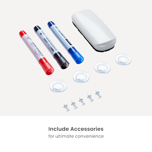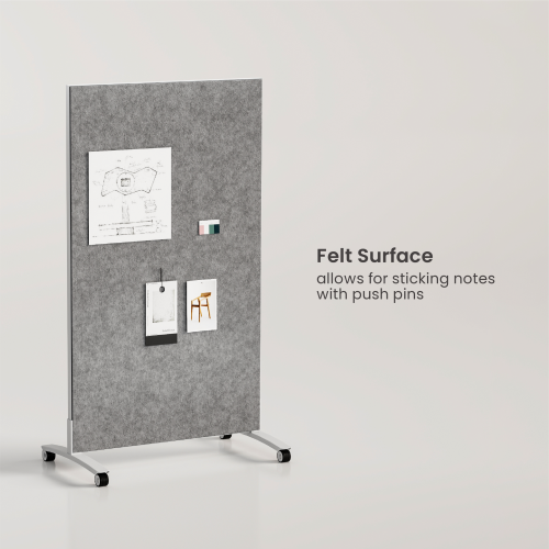 Boasting a minimalist and easy-to-use design, this mobile glass whiteboard makes a perfect balance between functionality and aesthetics. Large magnetic board allows for smoothly writing, easily displaying and cleaning. Felt Back provides a stylish way to display notes or cards with push pins, adding a touch of elegance. And its durable casters ensure mobility.