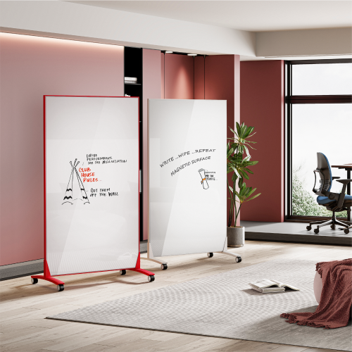 Single-Sided Mobile Magnetic Glass Whiteboard with Felt Back