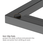 The DWS38-02 is a budget-friendly desk converter, enabling users to alternate between seated and standing work modes—your perfect office companion! With its stepless height adjustment and single-handle operation, setting your preferred work height becomes incredibly flexible and hassle-free. The included laptop holder and felt safety edge stopper deliver a pleasant office journey. The non-slip rubber pads installed at all four corners at the bottom effectively prevent unwanted movement of the desk converter during work while protecting your desk surface from scratches and damage.