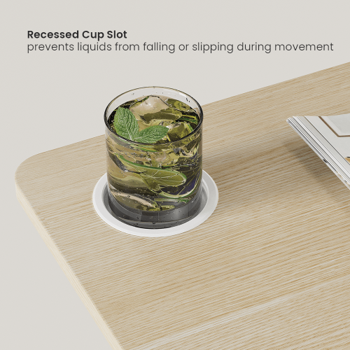 Featuring smooth and quiet height adjustment, the FMT02-2 Gas Spring Side Table frees users from a fixed working area and boosts productivity. Hidden casters reduce table base height to fit under almost any beds, couches and recliners. A premium gas spring with a self-locking mechanism provides smooth and effortless height adjustment, and secures the height. A sturdy column along with heavy-duty frame enhances the stability while writing or typing. Little things make big deals. Built-in cup slot prevents the cup from falling or slipping while moving.