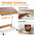 This table adopts E1 grade environmental protection particle board and base is made of high-strength carbon steel. The desktop angle is adjusted from 0° to 80° - reading, painting, writing and working to meet daily needs. The height adjustable mechanism operates with rotary knob for dynamic study or work. With four high quality wheels with brakes, it allows you relocate the table easily.