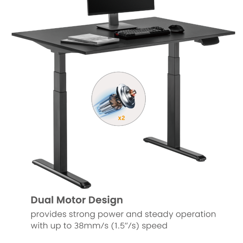 Elevate your productivity with M06-23DE affordable and stable Dual-Motor Standing Desk! Upgrade your workspace today and experience the perfect blend of performance and affordability. Designed with two strong motors and two crossbars for maximum stability and strength, ensuring a solid foundation for your work. Easily adjust the crossbar width to fit various desktop sizes. Three classic color options easily blend into any room style. Reach new heights of success and unleash your true potential!