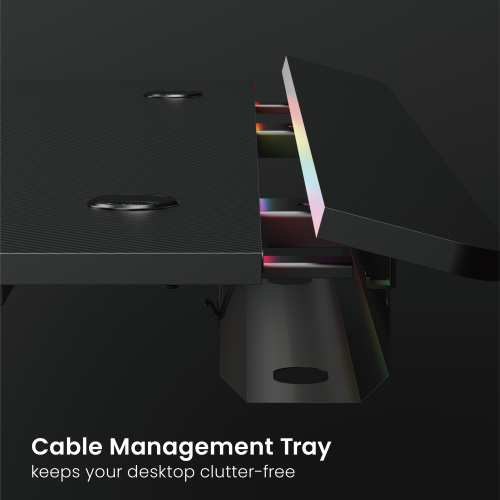 Sleek and reliable, the GMD16-4 gaming desk features 18 RGB lighting effects for an immersive experience. Cable management tray and slots ensure a clean, organized workspace, making it the perfect companion for any gaming setup.