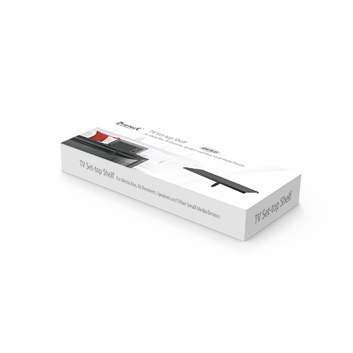 Make the most use of space with the brand new TV Set-top Shelf. Kickstand design easily adapts the shelf to any TV. With the length of 300mm, it provides more space for media boxes, AV Receivers, speakers and other small media devices. Solid steel structure ensures weight capacity up to 6kgs. Anti-slip pad is attached to prevent sliding. Anti-skid pad prevents TV surface from accidental drops. Vented design improves ventilation to reduce overheating.