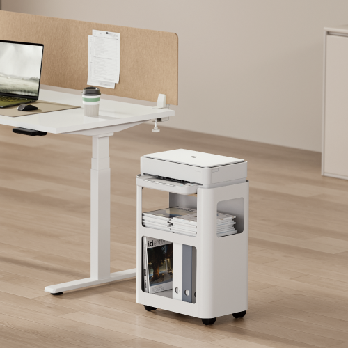 The CAB10-01 Open Shelf Mobile Cabinet is a versatile storage solution with distinctive features. Its rounded corner design enhances aesthetics and safety. The cable management system ensures a tidy appearance. With ample storage space, your belongings stay organized and accessible. The hidden 360° swivel casters not only add a sleek touch but also facilitate effortless mobility. Elevate the space with this functional and stylish cabinet.
