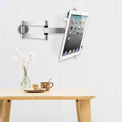 The LUMI PAD20-07, Multi-functional Adjustable iPad Wall Mount/ Table Stand, makes it alternative for you to place your iPad on the wall or on the desk and other flat surface. Wall mounting with foldable and stretchable arms can either allow space saving storage or multi-angle viewing. By placing it on the desk, you can easily change it into a folded desk stand to function like any other desk stand. Once on the wall, 360° rotation, 180° swivel and ±45° tilting allow you to effortlessly change the view of your iPad for any viewing perspective you need.