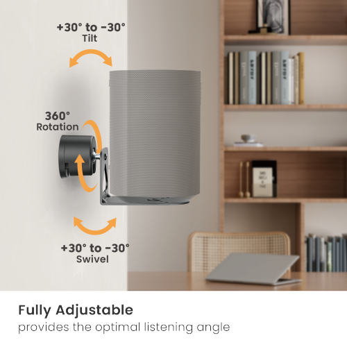 Enhance listening experience with LUMI's adjustable speaker wall mounts, the perfect solution for Sonos Era 100 & 300 speakers. Its tilt, swivel, and 360-degree rotation provides users with an optimal listening angle. Easy installation and cable management ensure a seamless, uncluttered look that complements any home decor.