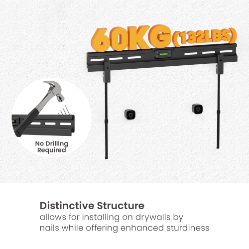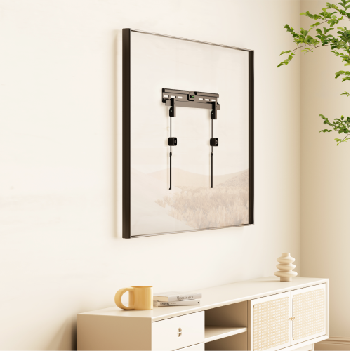 The LED-2046 Cost-Effective No Stud TV Hanger Mount, with its distinctive structure, expands the common solid wall/wood stud installation options by fitting drywalls. Designed with a super slim profile, it serves both aesthetic enhancement and space-saving purposes. While the picture-hanging style finishes the installation in minutes, the automatic spring lock with a quick-release cord further simplifies installation and removal. Easy to draw in when not in use, the adjustable cord length increases the tidiness. Plus, the reduced package size saves storage and delivery costs for e-commerce.