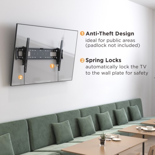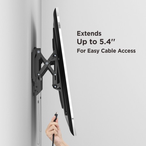 Large TVs mounted on traditional tilt wall brackets often hit the back wall and have limited tilt range. The LP75-48T Advanced Extension Tilt TV Wall Mount provide additional extension, so Large TVs can be fully tilted for viewing enjoyment while also providing access to wiring and for maintenance. Leveling adjustment allows TV to be perfectly positioned after installation. Special swivel ability supports flexible viewing angle and enough space for maintenance. Spring locks with release straps allow users to lock or release TV in a snap. Anti-theft design ensures the safety.