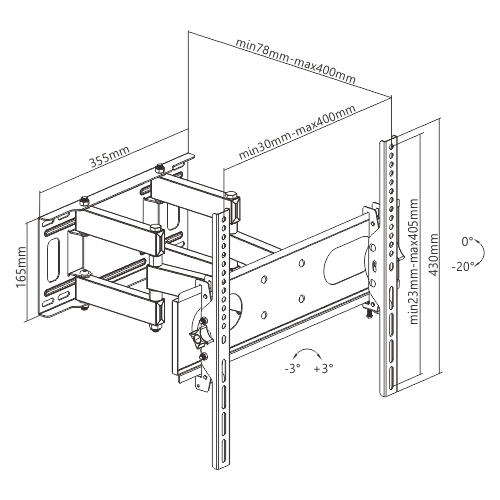 The KLA29-446 accommodates most 32"~55" flat panel TVs up to 35kg/77lbs, flexible design allows tilt and level adjustment for a better viewing angle. Locking rotary knobs ensure secure positions at any angle. The folding design also contributes to the better space utilization in your room. Do not hesitate to get one, the product offers a perfect mounting solution with the favorable price.