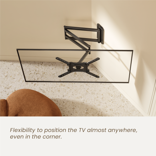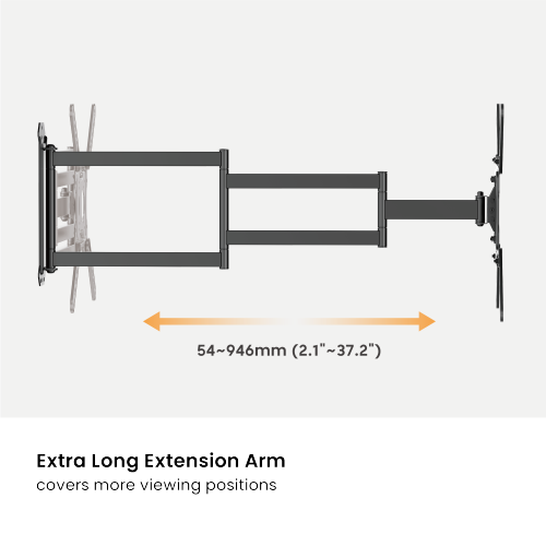 With extra long arms extending up to 946mm(37.2") and the full-motion design, the LPA84-445XL allows the users to position the TV almost anywhere, covering more viewing positions and making it ideal for watching 1 TV in different places. In addition, it comes with hook and loop fasteners for cable management.