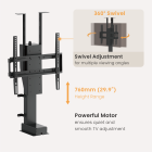 The LP66E-44MS provides quiet, smooth lift and 360° swivel for TVs from 32″ to 55″, seamlessly concealing them in cabinets or enclosures for a clean, minimalist look. The built-in collision avoidance system ensures safety, protecting both the TV and surrounding furniture. The TV stand can be easily controlled via Amazon Alexa, Google Home, Tuya App, or remote, to meet various requirements.