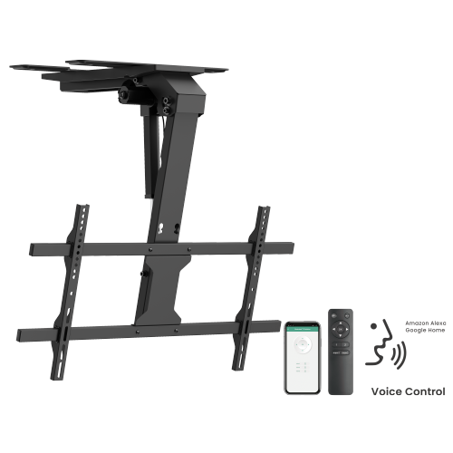 Large Smart Electric TV Ceiling Mount with Flat and Pitched Ceiling Compatibility & Double Stud Installation Option