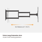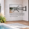 Built to withstand all outdoor conditions, this TV wall mount features a weather-resistant powder-coated finish and stainless steel hardware for long-lasting durability. Tested with 96 hours of salt-spray exposure, it provides superior corrosion resistance and reliable performance in any climate—rain, sun, or snow. Perfect for patios, balconies, gazebos, RVs, and more. The extra-long, flexible arm ensures clear and comfortable viewing from anywhere, even when the TV is mounted in a corner.