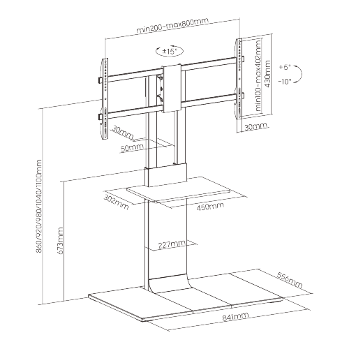 The FS46-48T TV Stand is designed to accommodate large displays. With five adjustable height levels, it offers a customizable viewing experience. The stand features a sturdy steel base and durable mounting brackets, as well as a convenient storage shelf, showcasing both practicality and thoughtful design. Its modern style and versatility make it more than just a TV stand, but a stylish piece of home decor.