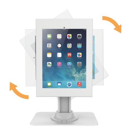 The new PAD26-02L Anti-theft Countertop iPad Kiosk with security lock is designed for protecting your tablets in the public. Holder with 90° rotate and tilt function for multiple viewing angle. Power cable and other cables can run along the tube for better organizing. Steel base is solid and stable. Ideal for use in education, health-care, corporate, retail and point of sale environments.
