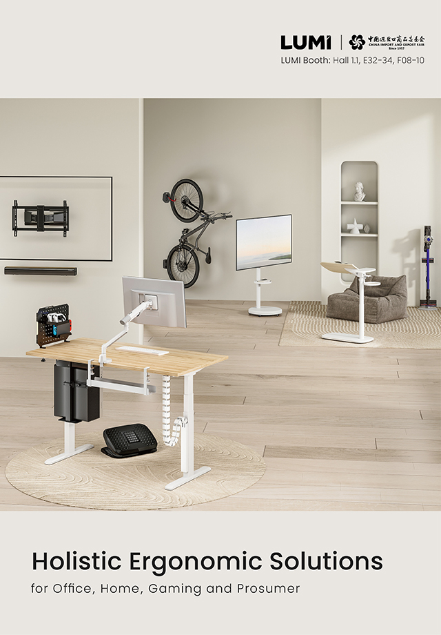 LUMI will be highlighting our newest products, including Mechanical Spring Monitor Arm, Foot Rest, Gaming Desk, Racing Simulator Cockpit, Monitor Mount for Cockpit, Bike Floor Stand, Wobble Perch Stool. Drop by our Booth E32-34,F08-10, at Hall 1.1 to talk with our team and experience our products in person.