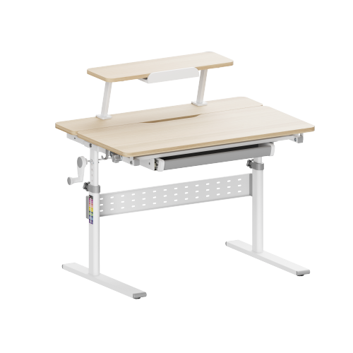 This height adjustable children desk provides the perfect choice for promoting healthier work habits as a child grows. Ergonomic design helps protect a child’s spine, shoulder, neck and eyes from harm during the formative years. Height adjustments are made easy using a crank handle and the tiltable desktop provides an optimal angle for comfort when writing, reading, and drawing. Tiltable book holder allows kids reading in an optimal angle. Manufactured using eco-friendly materials, with rounded corners for safety and comfort combined with quality manufacturing processes and performance.