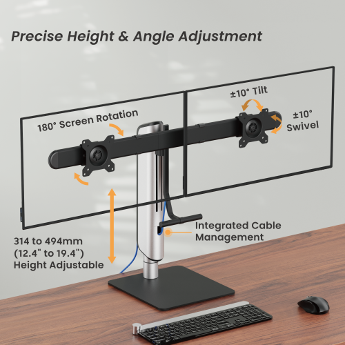Heavy-Duty Vertical Lift Free-Standing Dual-Screen Monitor Stand