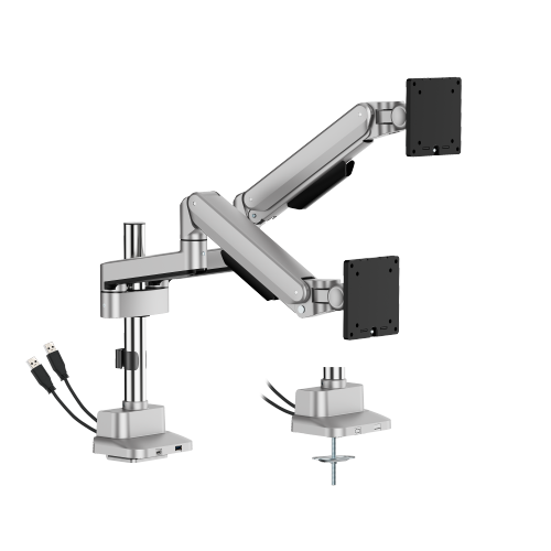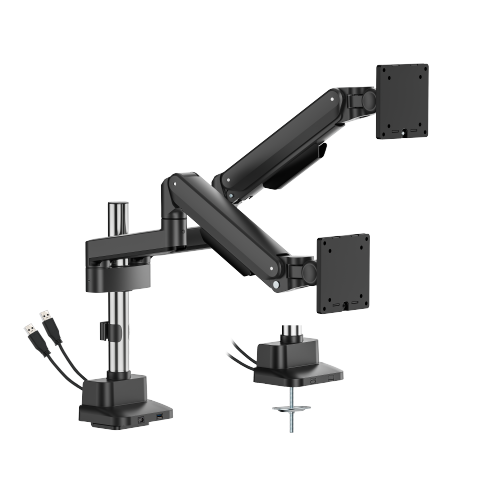 Deluxe Mechanical Spring Dual Monitor Arm with USB-A/USB-C Ports (Pole Mounted)