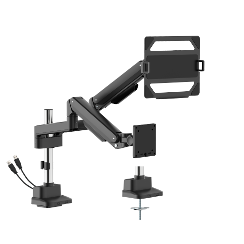 Deluxe Mechanical Spring Dual Monitor Arm & Laptop Holder with USB-A/USB-C Ports (Pole Mounted)