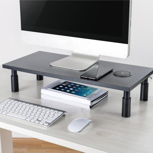 SOPORTE DE MESA PARA MONITOR AJUSTABLE EN ALTURA DE TABLEROS DE PARTÍCULAS CON CARGADOR INALÁMBRICO QI INCORPORADO