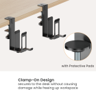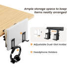 he Clamp-On Desk Organizer provides a versatile storage solution to keep workstations tidy and essentials within easy reach. It features an adjustable dual-slot holder for devices up to 18", and integrated headphone holders for organized headset storage. Its secure clamp-on design protects desk surfaces while maximizing workspace, and its compact, efficient packaging reduces shipping and storage costs, making it ideal for e-commerce sellers.