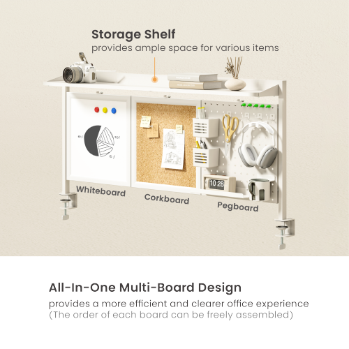 Clamp-On Desk Pegboard, Whiteboard & Corkboard Organizer Shelf (for 1400mm Desktops)