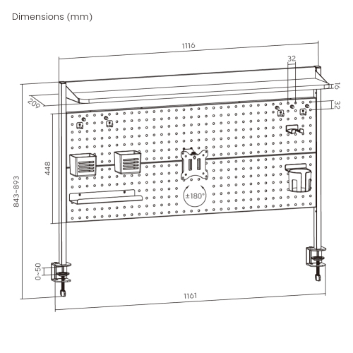 Clamp-On Multi-Purpose Pegboard Organizer Shelf (for 1200mm Desktops)