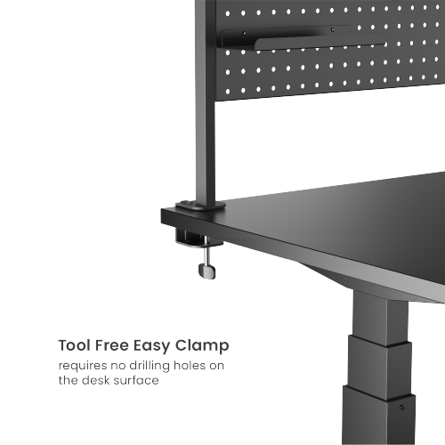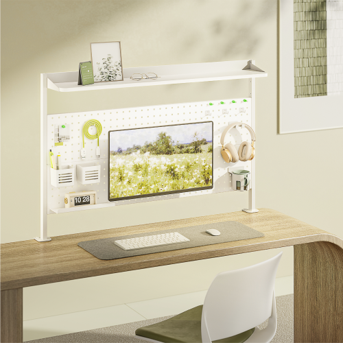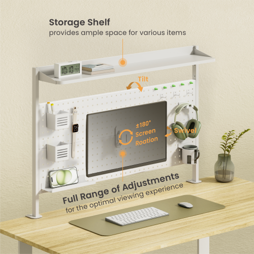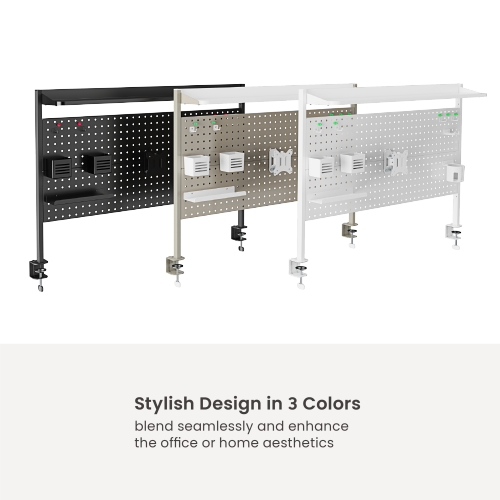 The STB31-06 Desk Pegboard Organizer Shelf offers superior organization, this unit not only provides ample storage but also grants easy access to your office essentials. The product is complemented by a detachable VESA plate, allowing quick installation and removal, and a wide range adjustment feature to enhance viewing experience. It preserves the desk surface with its tool-free clamp installation feature. Retaining the series' stylish design, this product masterfully harmonizes with its environment, uplifting the aesthetics of space.