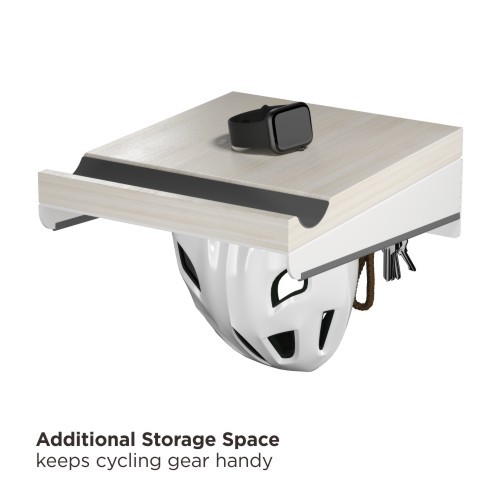 Apto para bicicletas con un tubo superior recto (diámetro inferior a 55 mm) y una anchura de manillar de hasta 500 mm (19,7"), el Soporte de Pared con Estantería Abierta LBM-02 constituye una pared de exposición para los amantes de las bicicletas. Tener las bicicletas colgadas en la pared puede liberar espacio en un garaje y mostrar a la gente algunas de las mejores colecciones. También se incluye un espacio de almacenamiento adicional, para mantener el equipo de ciclismo a mano. La correa de la rueda evita que la rueda delantera se mueva o se balancee hacia fuera, protegiendo las paredes y otros elementos de los daños.