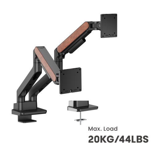 Securely holding up to 20kg (44lbs) and accommodating monitors up to 35''. Optimized head tilting spring makes a smoother tilting adjustment. Premium leather accents meet sleek functionality, this arm combines strength with style to elevate the workspace. Its easy topside installation eliminates the need for crawling under desks.