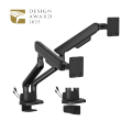 Where elegance meets performance, the LDT118-C024UC elevates your workspace with sleek styling and versatile functionality. While supporting effortless multi-directional adjustments, a precision spring tension system ensures its smooth motion. With convenient USB ports, data transfer and charging are facilitated. The quick-release VESA plate and joints simplify assembly and minimize packaging size, and topside installation avoids the hassle of crawling under desks. The rotation stop prevents the arm from hitting nearby walls and partitions. Available in multiple colors, this monitor arm seamlessly blends into diverse décor.